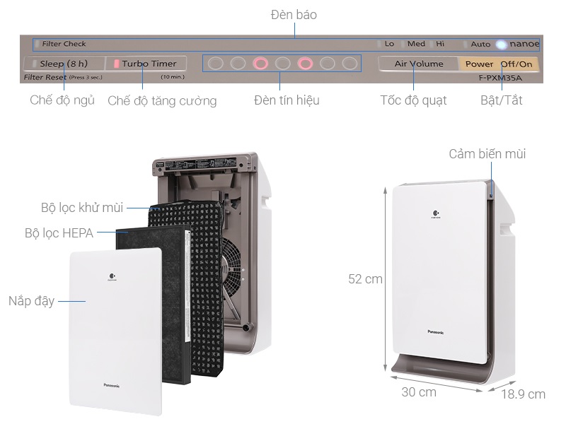Máy lọc không khí Panasonic F-PXM35A - máy khử mùi chính hãng